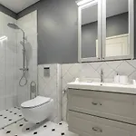 Ferro de passar, o ferro e tábua de passar, controle de temperatura também estão incluídos, e pátio e sala de jantar estão presentes nos quartos para maior comodidade. Bidé, casa de banho separada e chuveiro, juntamente com secador de cabelo e lençóis de banho, são fornecidos.